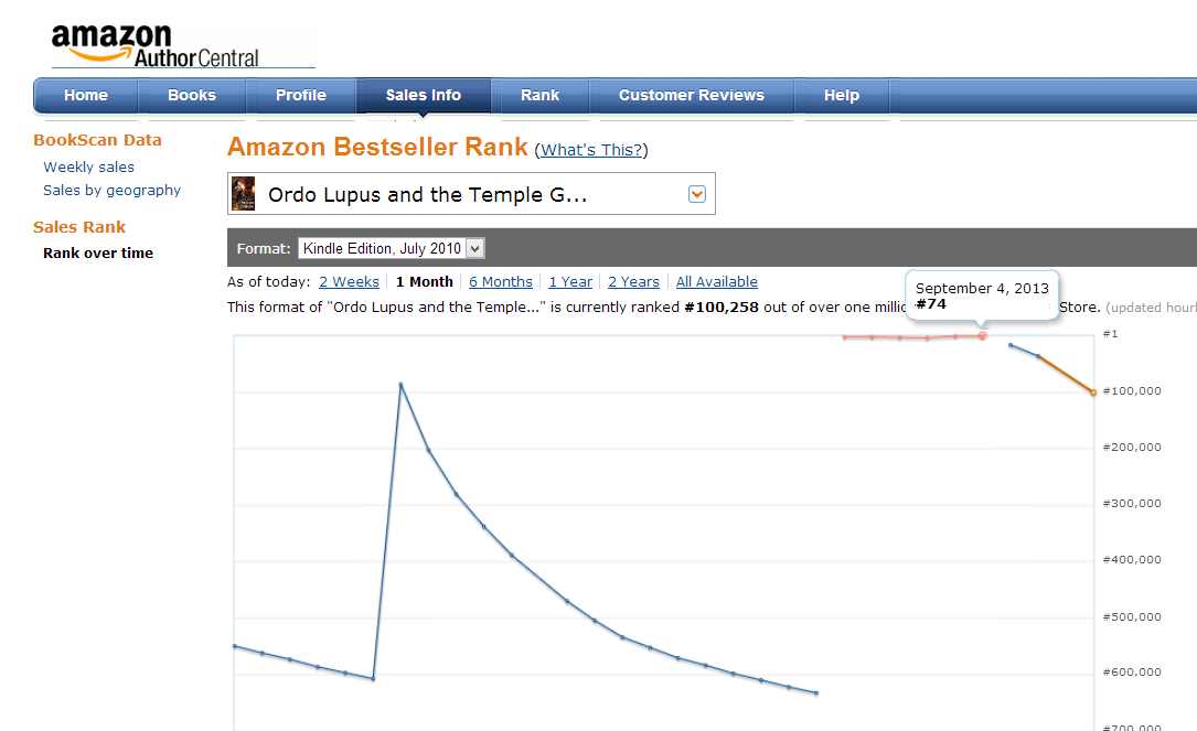 The big news this week is that I had over 2500 downloads of Ordo Lupus and the Temple Gate last week during it’s free promotion during which it made it all the way up to #74 in the Amazon US Best Sellers lists!! I can hardly believe it. Anyway more of that in a moment but don’t despair; the sneak preview is below this section this week.